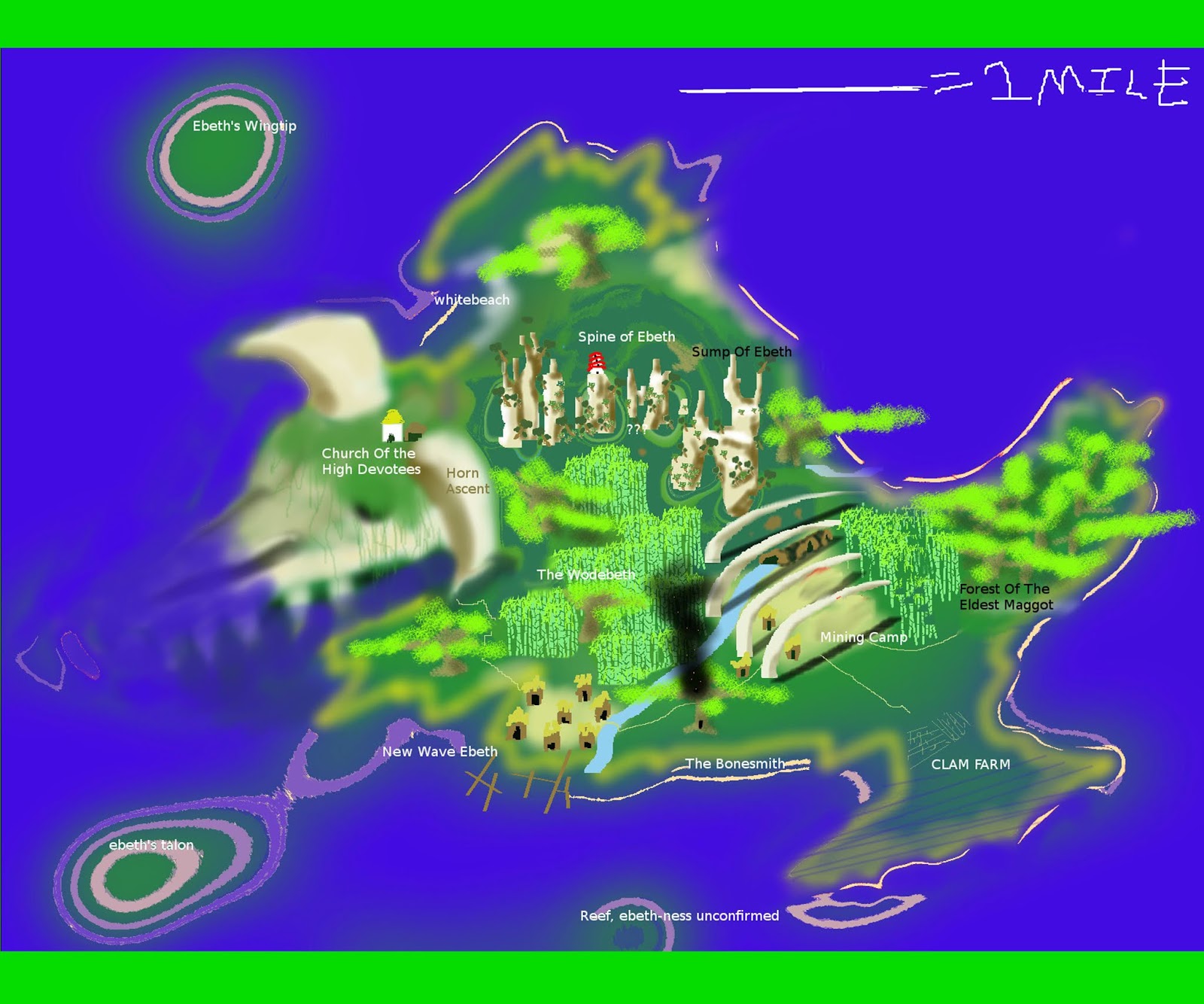 | Ebeth is off to the right, and that area to the left is Lungfungus' Fassulia that I stuck on there to playtest. It's a good intermediate zone between Oroboro and Saresare. |