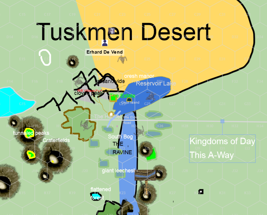 Kitchen- Though the Great Hall also has a fireplace to roast things in, the kitchen is a crowded space full of servants, who frequently enter and exit. As an unspoken rule, it is expected that servers taste the food as they bring it out as a guard against poison, (and a chef who isn't tasting food constantly is a poor one) and failure to do so is seen not as a sign of potential poisoning typically, but of a possible imposter, to which a challenge of the weekly password may be posed as proof of identity.